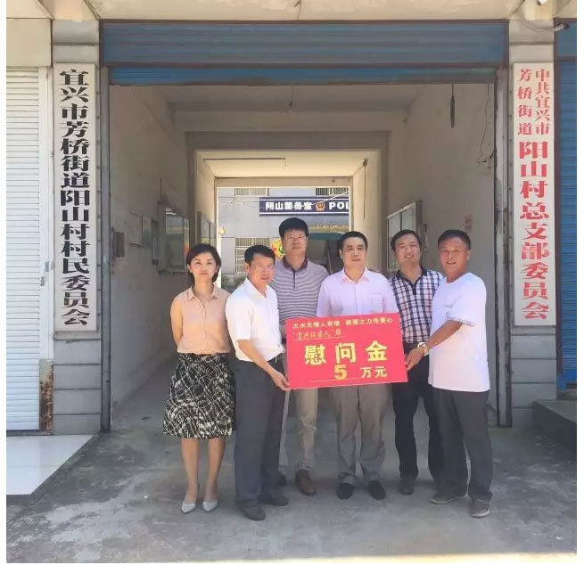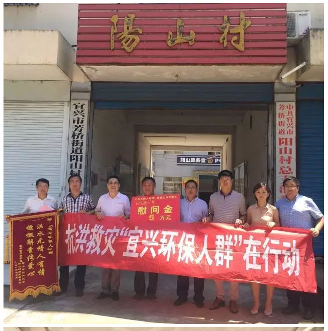 宜興環保人在陽山村了解該村受災情況,并將愛心捐款落到實處。