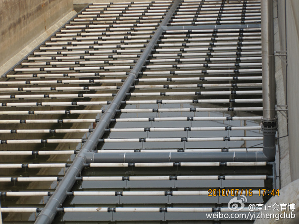 而高分子管式曝氣器已逐步取代剛玉、第二代橡膠膜盤式和管式曝氣器,采用的是復(fù)合高密度聚乙烯曝氣膜,HDPE高分子疏水性材料,膜不易結(jié)垢,不粘連雜物,具有較高的空隙率和均勻的孔徑,孔徑為50微米左右;且高分子膜片表面具有良好的疏水性能,因此從原理上決定了曝氣管的抗污染性,耐高溫(大于110度),耐酸堿,通用性好,不硬化,不結(jié)垢;保證使用壽命在10年以上。