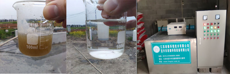 圖為 凌泰環(huán)保養(yǎng)殖污水處理項目進水與出水圖