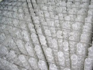 組合填料集軟性和半軟性填料之優點,克服了兩者的弊端,在污水的生化處理過程中為專業的產品。它是有塑料環為骨架,負載著維綸絲,維綸絲緊固在塑料環上,在污水中絲束分布均勻,易生膜、換膜,并對污水濃液的適應性好。其結構是將塑料圓片壓扣改成雙圈大塑料環,將醛化纖維或滌綸絲壓在環的環圈上,使纖維束均勻分布;內圈是雪花狀塑料枝條,既能掛膜,又能有效切割氣泡,提高氧的轉移速率和利用率。使水氣生物膜得到充分交換,使水中的有機物得到有效處理。組合填料在強大的曝氣湍激的水氣流的情況下好的選用填料。